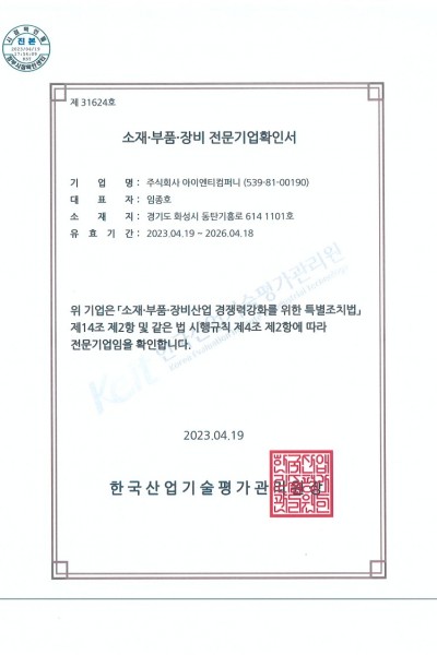 [소재부품장비전문기업확인서] 2023.04.19