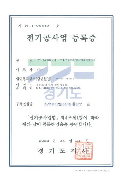 [전기공사업등록증] 2022.04.21