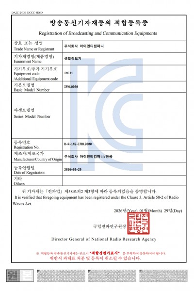 [방송통신기자재등록필증] IFHL0000 (26.01.29)