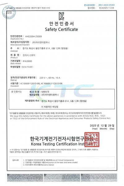 [전기안전인증서] IFH1230 외 파생모델 (25.12.29)