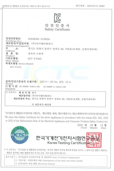 [전기안전인증서] INT-F105S 외 파생모델 (21.09.14)