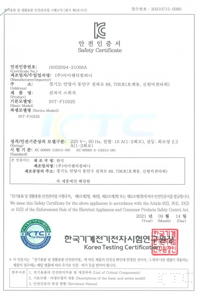 [전기안전인증서] INT-F1022S 외 파생모델 (21.09.14)