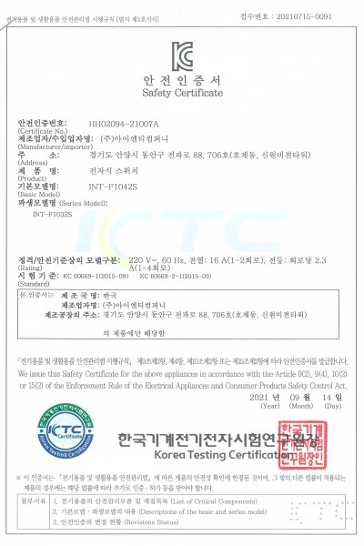 [전기안전인증서] INT-F1042S 외 파생모델 (21.09.14)